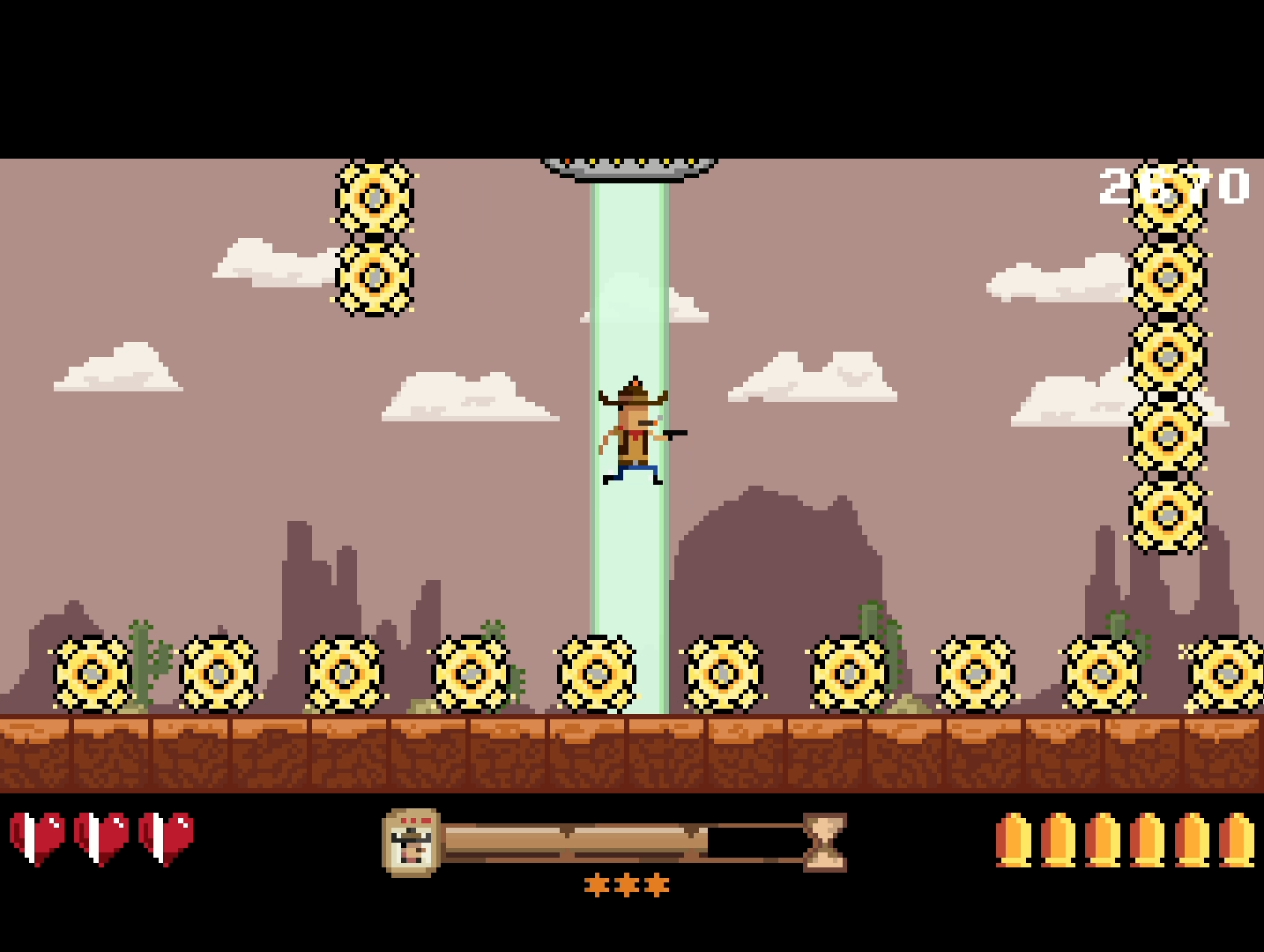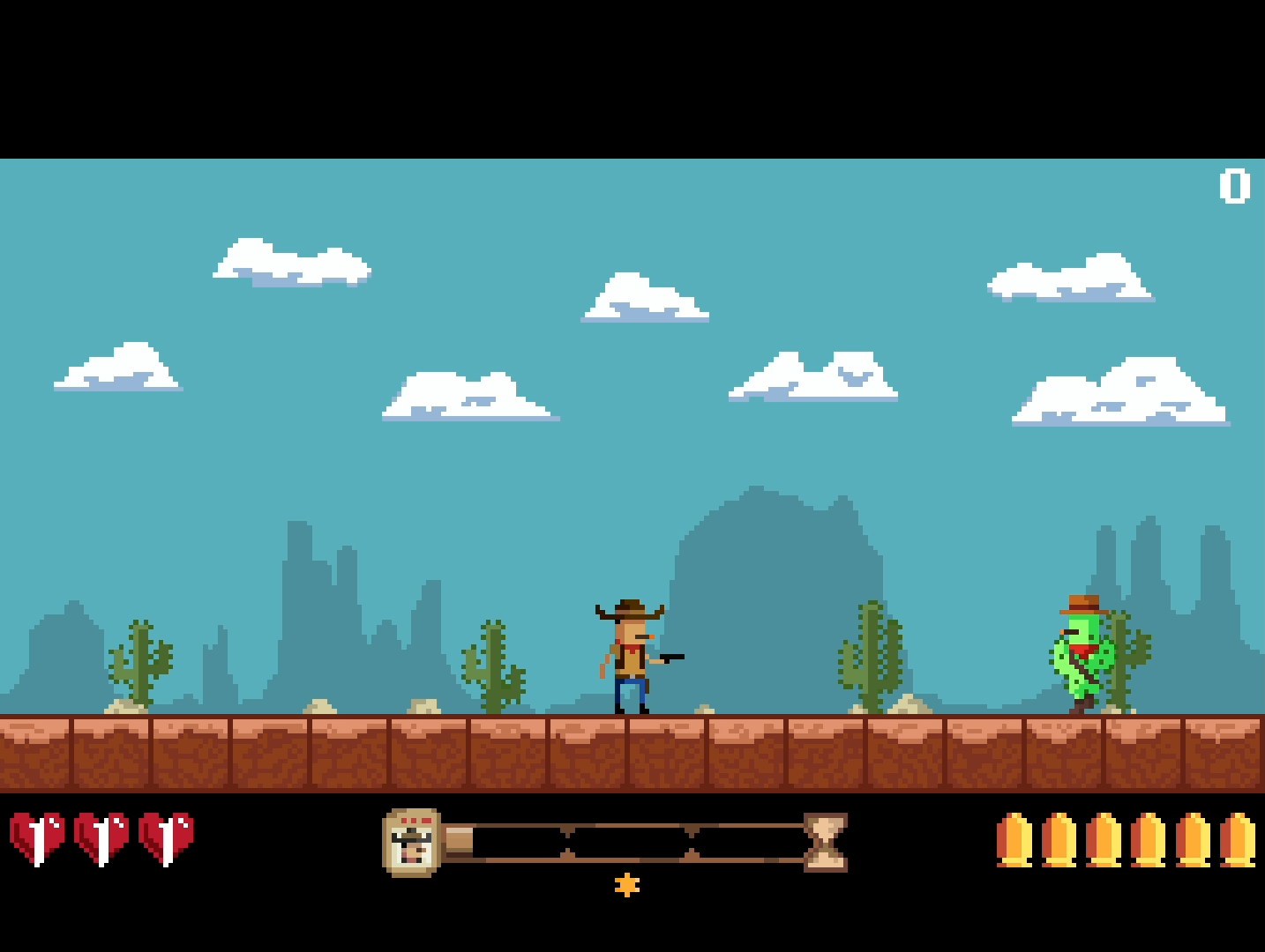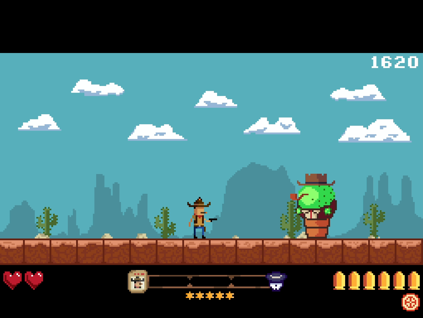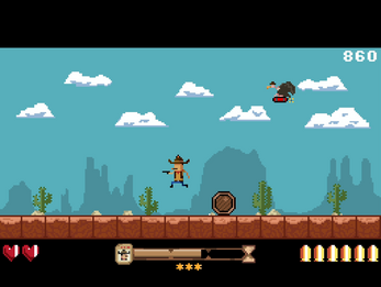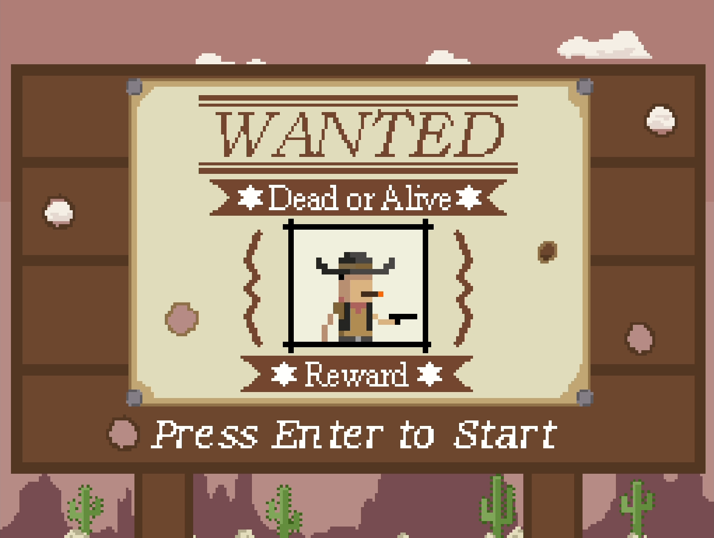 Play as a Wanted cowboy in this fast-paced 8-bit arcade survival game. Face relentless waves of enemies from the Wild West and beyond!